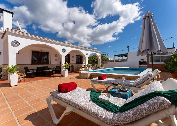 Villa Nerja 073 располагается в 25 минутах неспешного шага от Парка Верано Асуль и предлагает гостям провести вечер на террасе с бассейном.